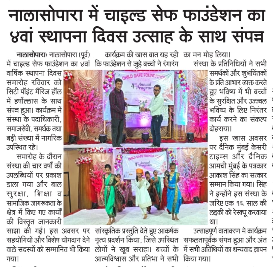See how Child Safe Foundation is featured in newspapers, TV channels, and digital media.