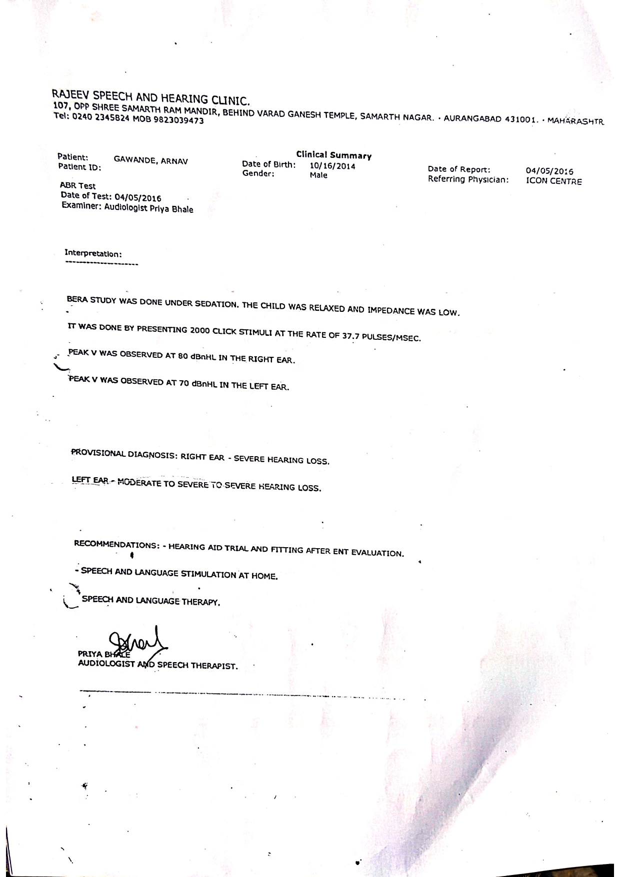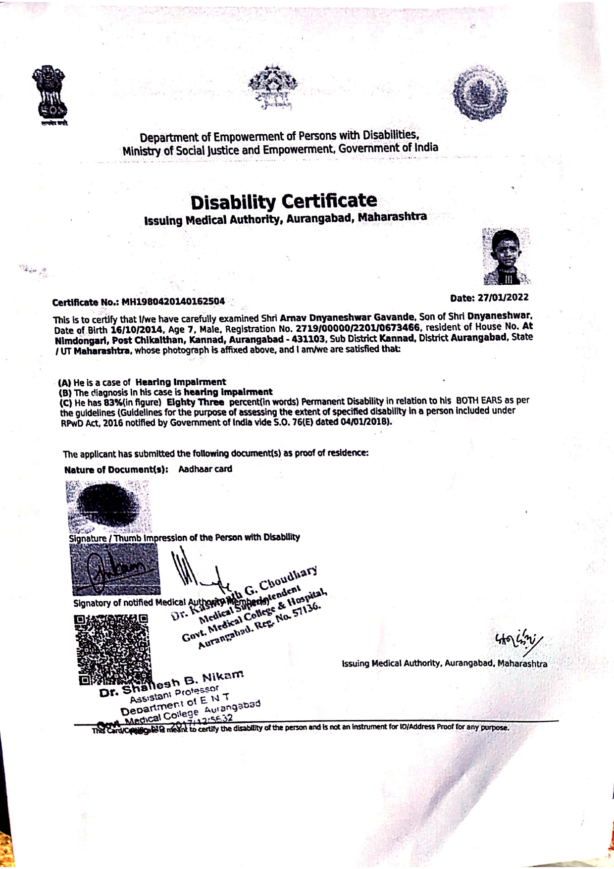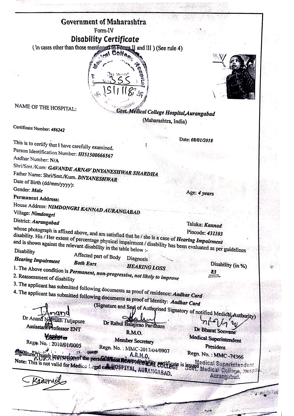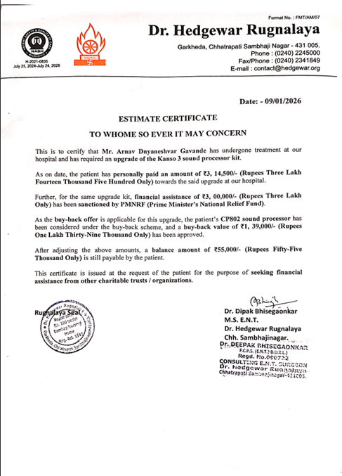 Arnav Dnyaneshwar Gavande, an 11-year-old boy from Chhatrapati Sambhajinagar, has been diagnosed with severe hearing loss in both ears. According to his audiology report, he urgently requires a Cochlear Nucleus N8 Sound Processor, which is essential for him to hear, speak confidently, and continue his education without limitations.